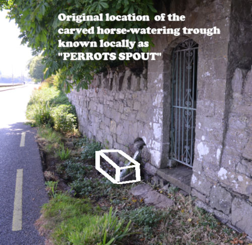 A REQUEST FOR HELP... Terrible to report but the carved stone horse-watering trough known locally as PERROTS SPOUT outside THORNCLIFFE was stolen some years ago. This carved-stone, engraved trough was beside the riverside entrance to THORNCLIFFE and the stream of fresh water that flows through the gardens of THORNCLIFFE fed it.